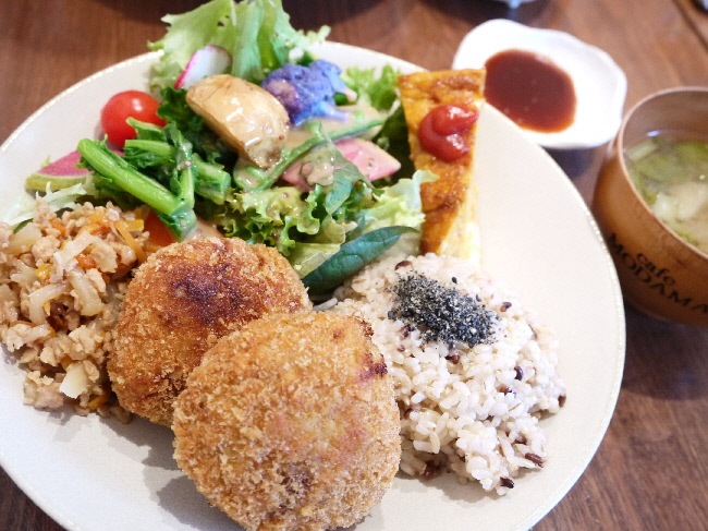 母親が 数日前から cafe MODAMA の コロッケ定食を食べたいと 言っていたので、きょう 2人でランチに行ってきた。