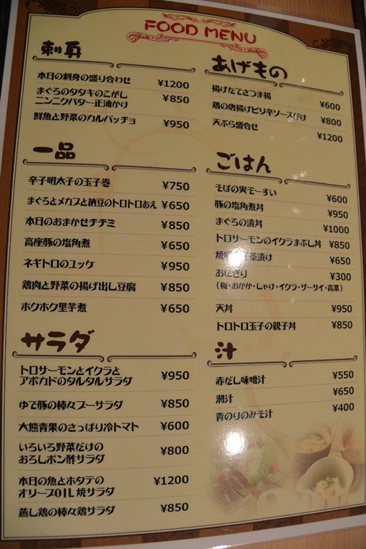 お昼は、下のメニューのようなランチセットを 食べられて、夜はお酒を 楽しみながら食事ができるんだ。