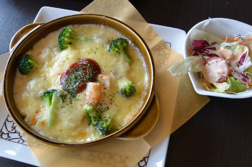 母親は、海老とブロッコリーのドリア(880円)+元町ロール