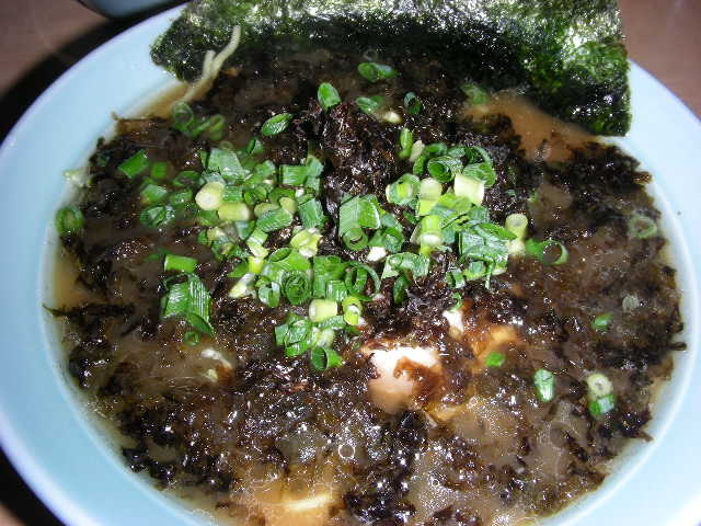 私が食べたのは 岩のりラーメン(750円)。 夫ロンは S先生おすすめの ネギラーメン(800円)。