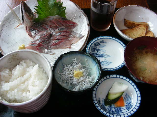 まず 腰越の しらすや で昼食。場所は腰越駅から3分位。オーナーさんは シラス漁の網元。