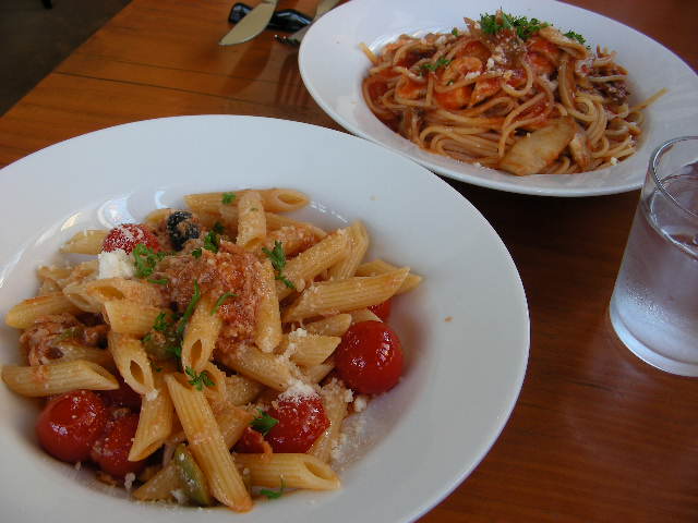 あれ(笑) あれれ(笑) ロンのスパゲティにエビが入っていて 私のペンネにツナが・・・(笑)