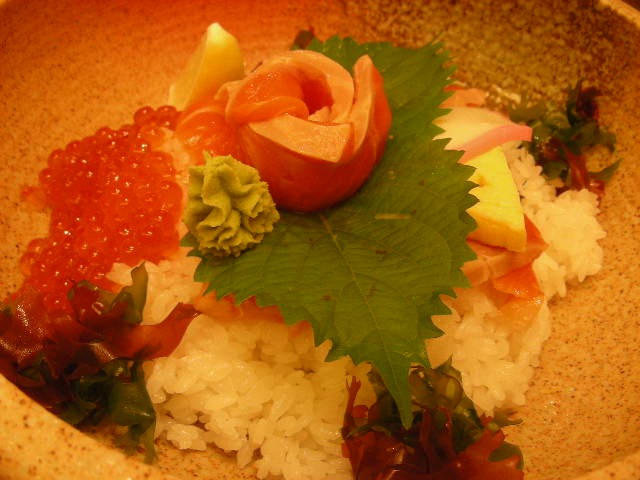 私はサーモンが大好きなんだけれど、シソの葉の下にも サーモンがあって、数えなかったけれど、結構たくさんあって