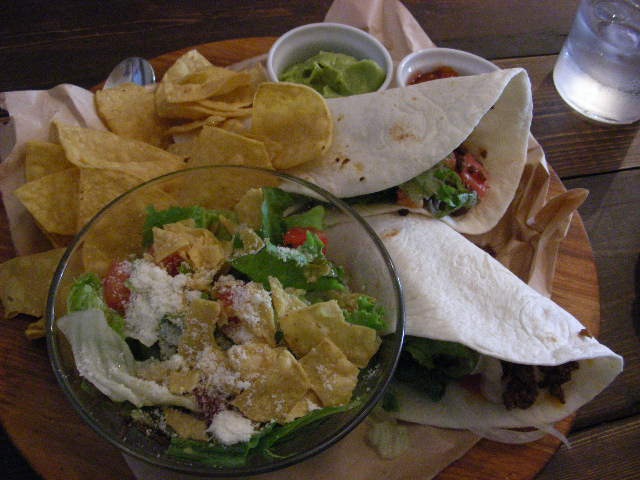 cheeky! ちゃんが 食べたのは 左下の ビーフタコスプレート(スープ、サラダ、チップス付)1000円。