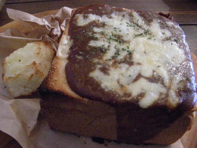 半斤の中身をくり抜いてあるんだけれど、それも ちゃんと ガーリックトーストになって 付いてくるんだ。