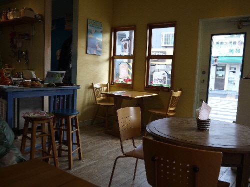 お店は 日差しがたっぷり入って明るく、テーブルは スペースがもったいないくらい 離れて置いてあって、
