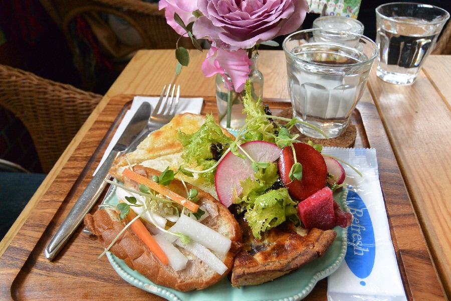 キッシュプレートは、キッシュの他にホットサンドとサラダも付くセットなんだ。
