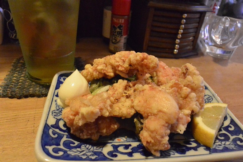 となりの席の リピーターらしきおじさん達も、フライドオニオンと 炙り明太子を食べていたよ。![]()