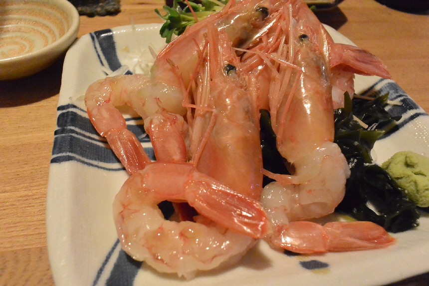 私の大好きな えびも オーダー。 赤えび刺身(600円)。