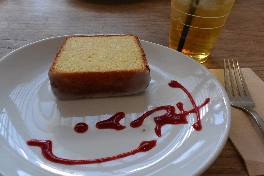 見た目華やかなケーキが 何種類もあったんだけれど、この シンプルなレモンケーキが、おいしそうに見えたんだ。