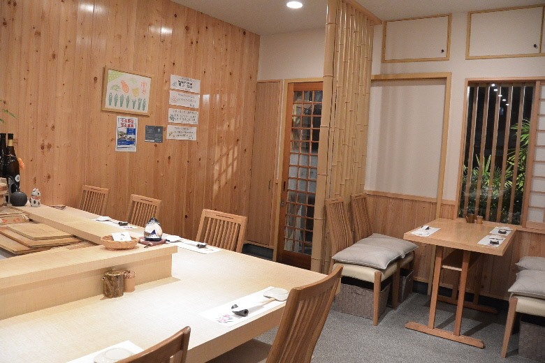 店内は、カウンター席と 4人掛けテーブルが1卓。