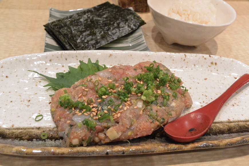 ココのなめろうは 数種類の魚で できていて、必ずイカが 入っているのが特徴なんだ。