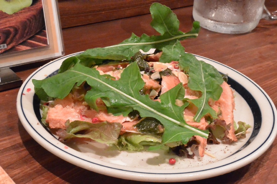 自家製スモークサーモン(700円)は、香り良く