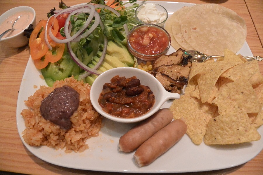 自家製トルティーヤ、スパイシーチキン、メキシカンライス、