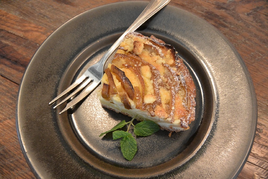 母親も、洋梨のタルトとアイスコーヒーが