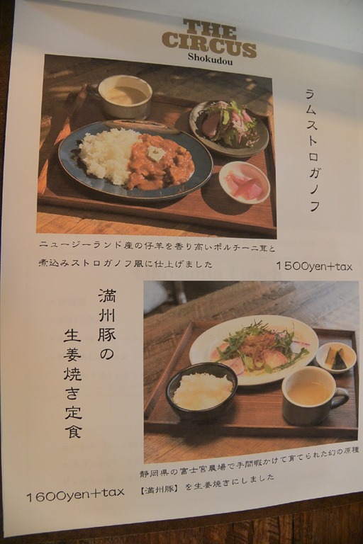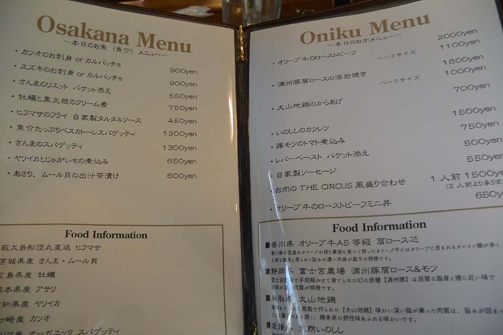 上はランチメニューで、下は夜のメニューの一部。