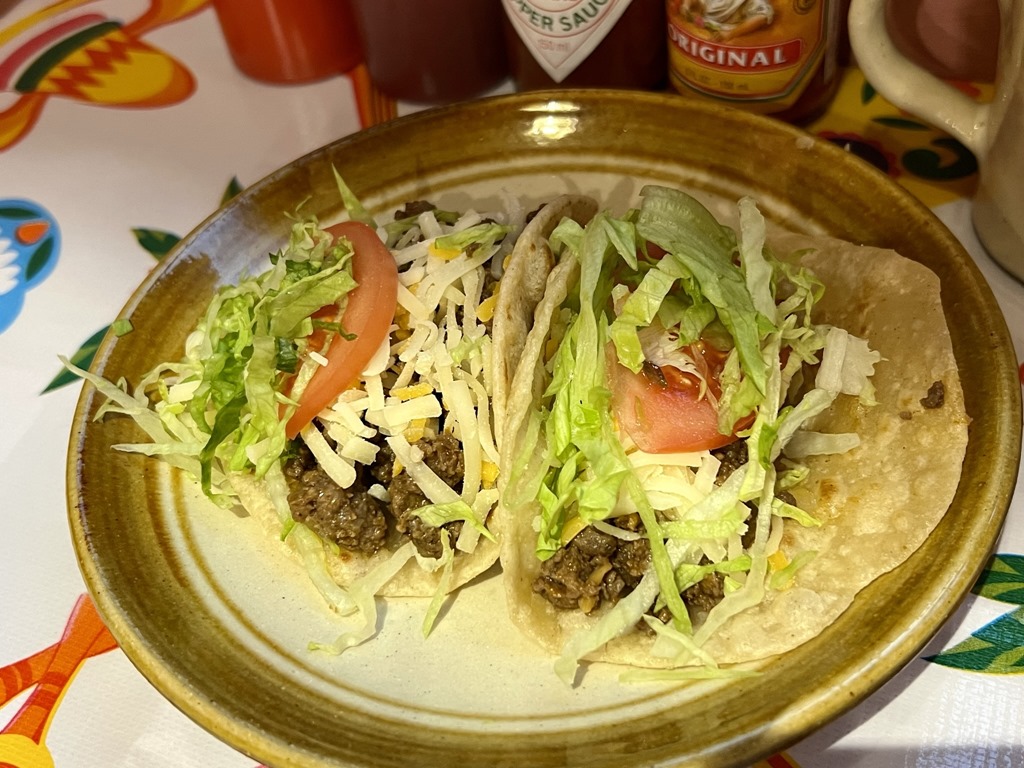 タコス ビーフ(2ピース500円)。