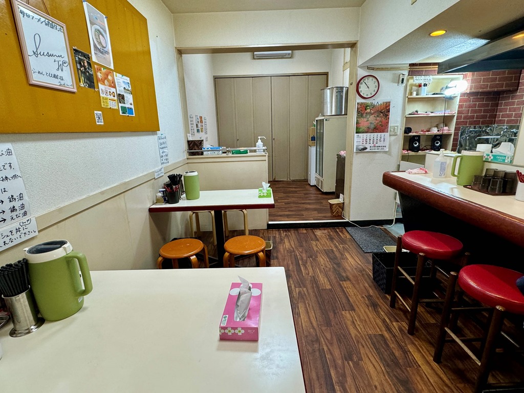 したラーメン屋さん。入口付近にカウンター3席、奥に