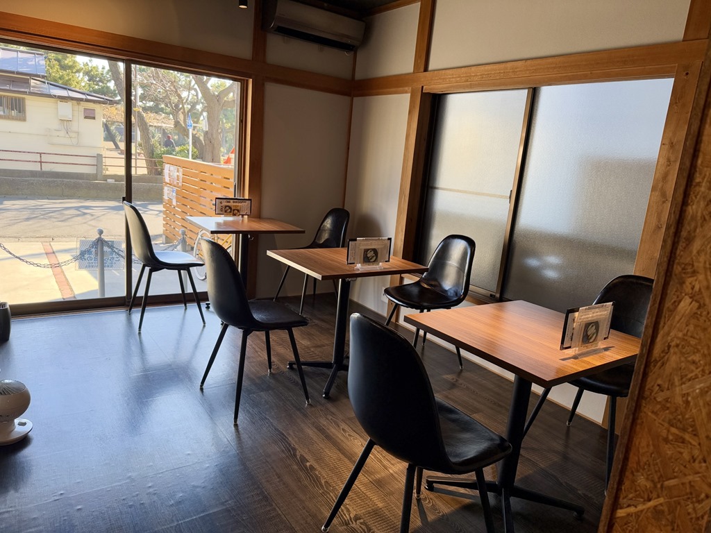 店内は シンプルな感じで、テーブル6卓、席数14。