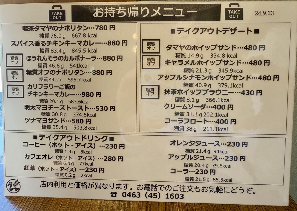 テイクアウトメニュー。
