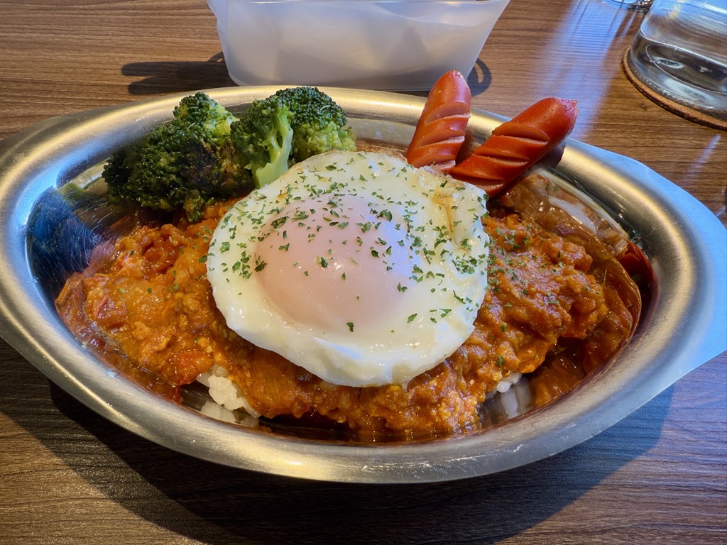 ちょい辛のキーマカレーが 目玉焼きで マイルドに