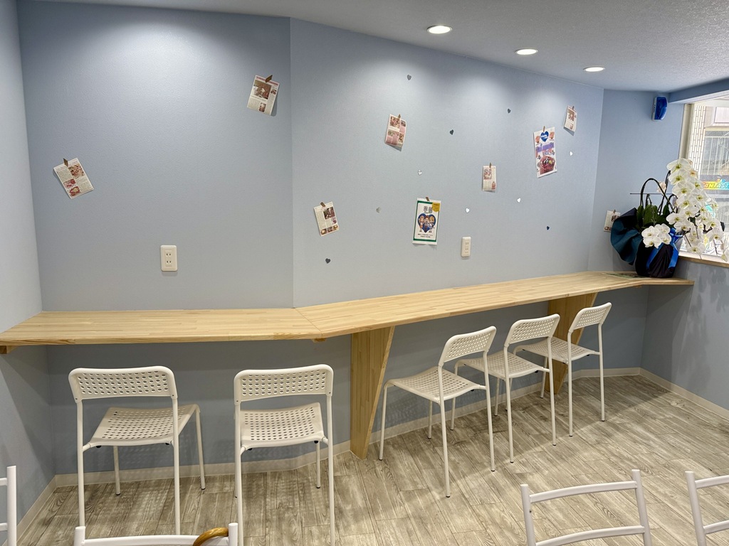 店内は カウンター5席と 4人掛けテーブル2卓&